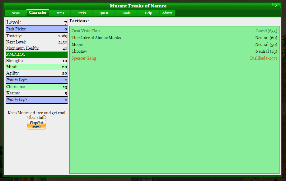 This is the character sheet (or book). When you first log into the game on a day you'd get the news tab. This is another image that gives you an idea of the scope of the game.